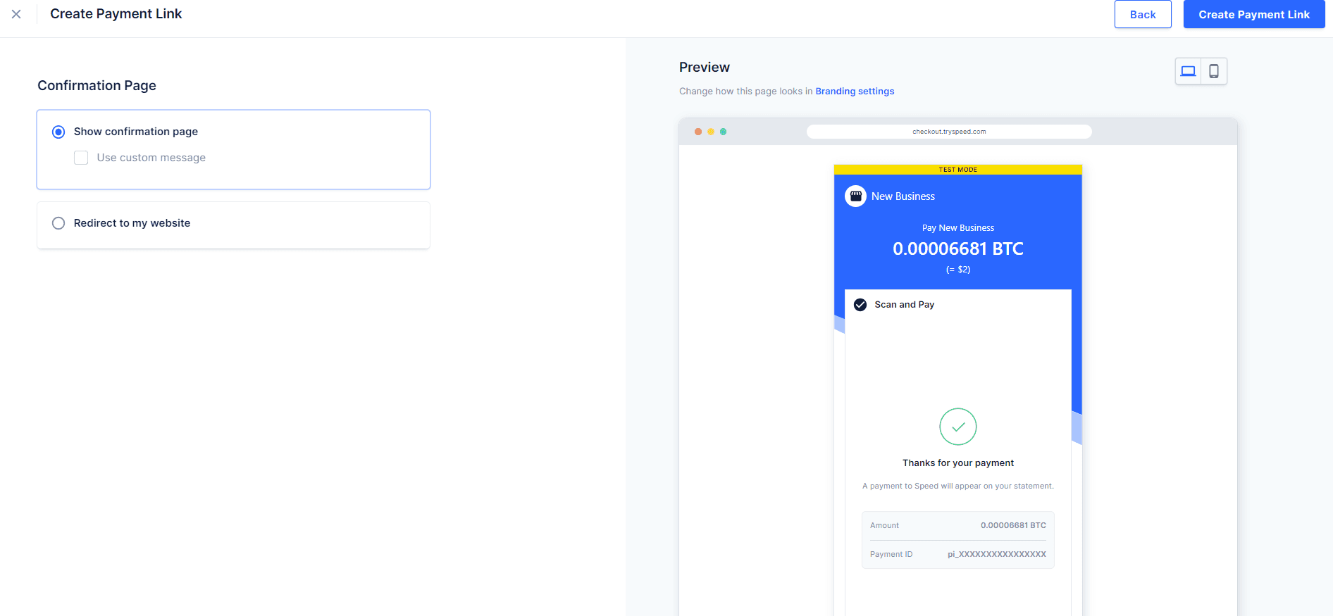 Many Bitcoin payment processors like Speed provide the feature of payment links. In this tech-driven world, payment links are considered the most convenient way to accept payments for your business. Receiving payment using the payment link is quite simple too. With 2 simple steps, one can accept payments anytime from anywhere.